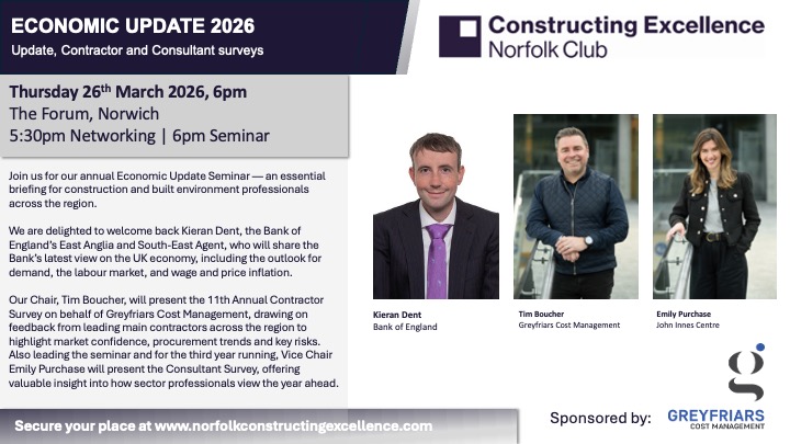 Join us as we celebrate the region’s best construction projects, teams and organisations. Network with industry leaders and recognise the outstanding achievements shaping Norfolk’s built environment.